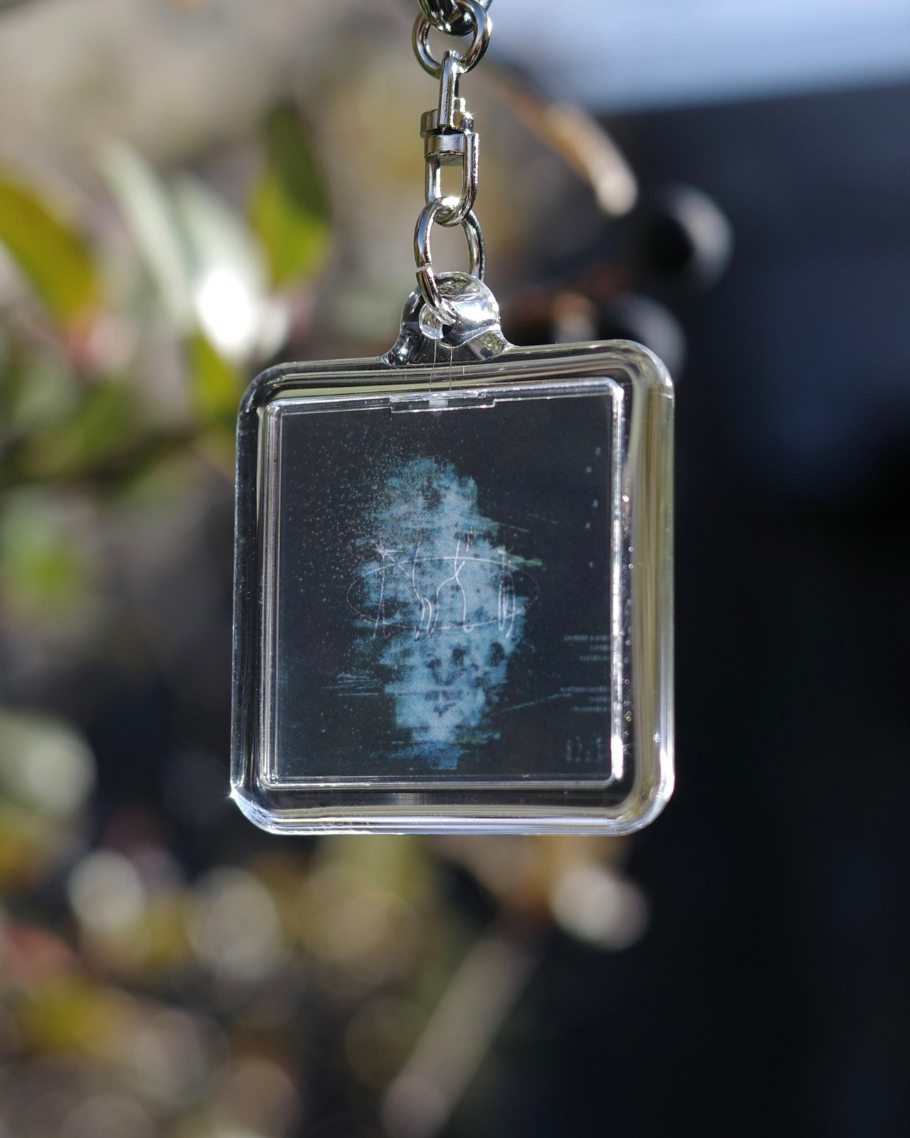 This is a translucent acrylic keychain.